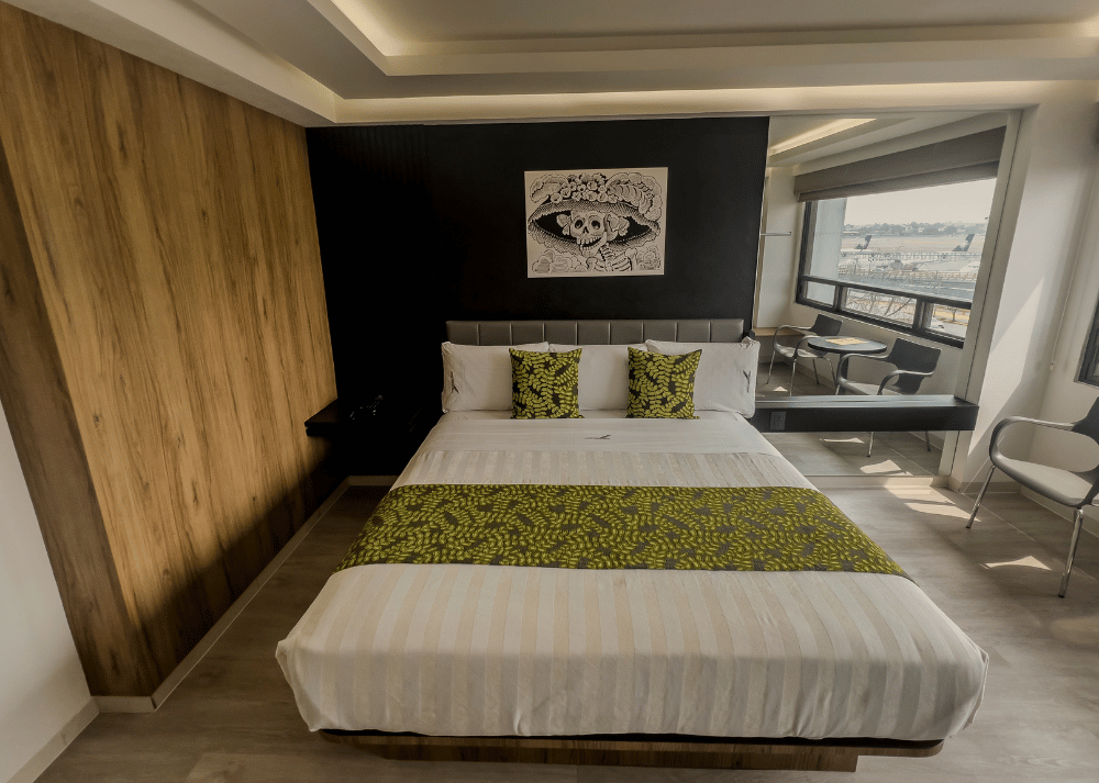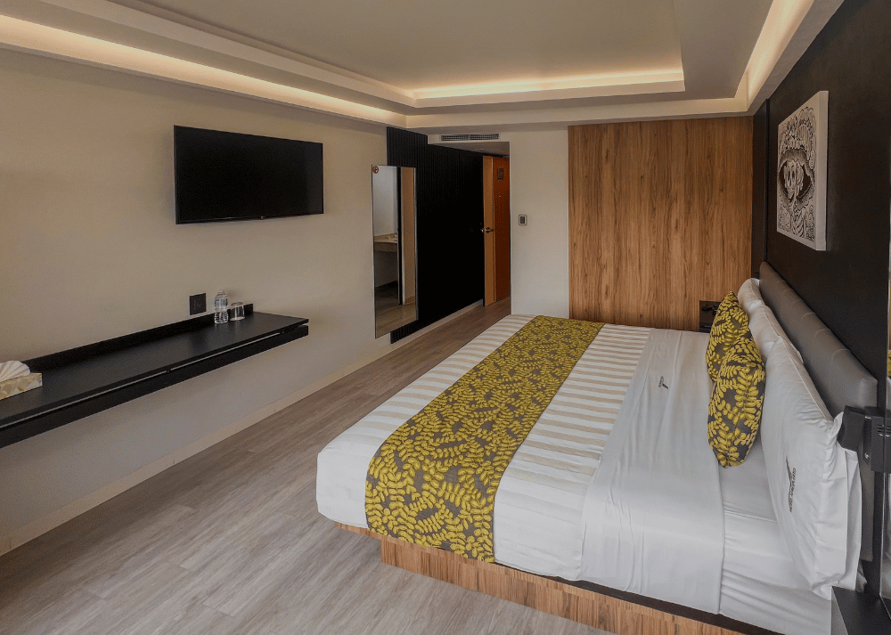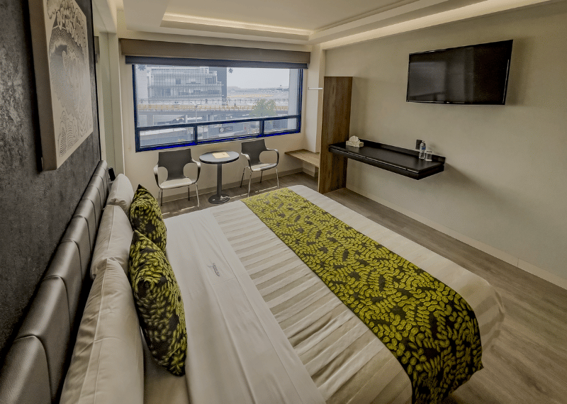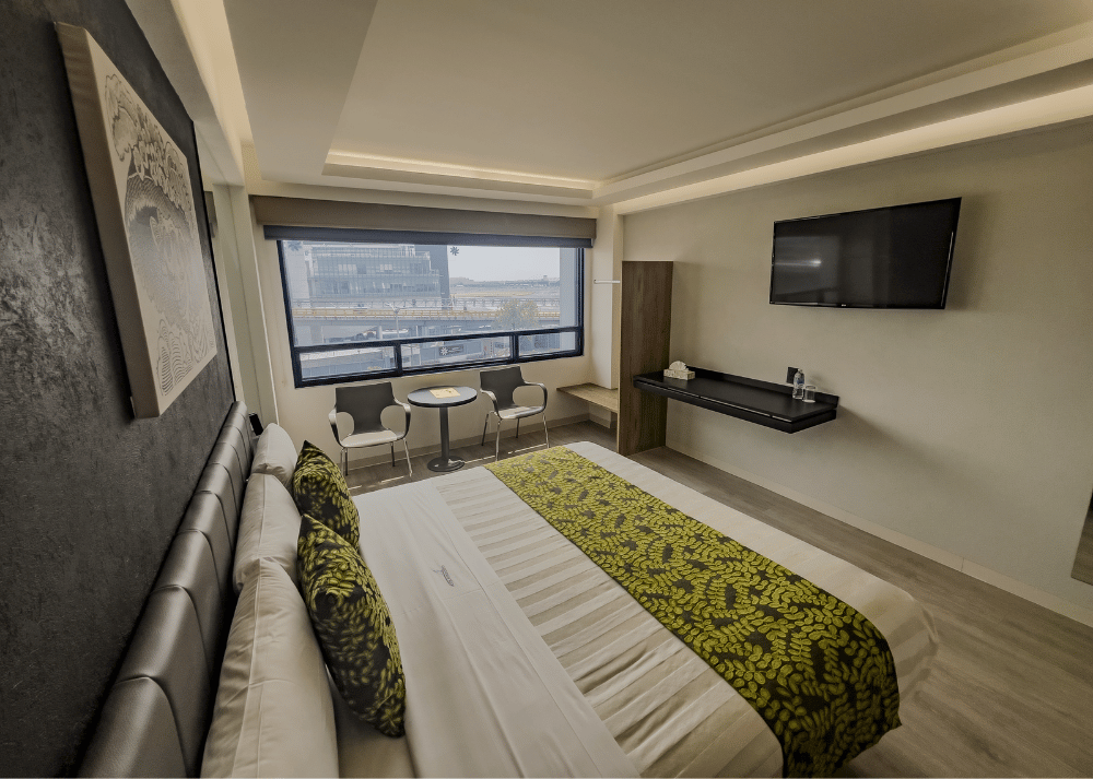 Habitación Sencilla Plus Habitación Sencilla plus Espacio moderno y cómodo con servicios premium para un descanso superior. A 5 min del Aeropuerto Cama King Size 2 Huéspedes WiFi Reservar Habitación Cama King Size Huéspedes 2
